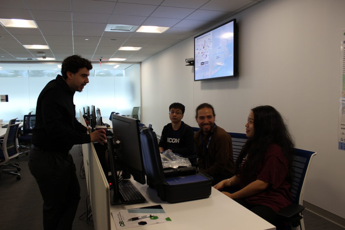 Seen in the photo (From L to R) – SNE-IAC Students – Alain Olhaberry, Khaled Djebbari Sr., and center lead student Yishu Bai.